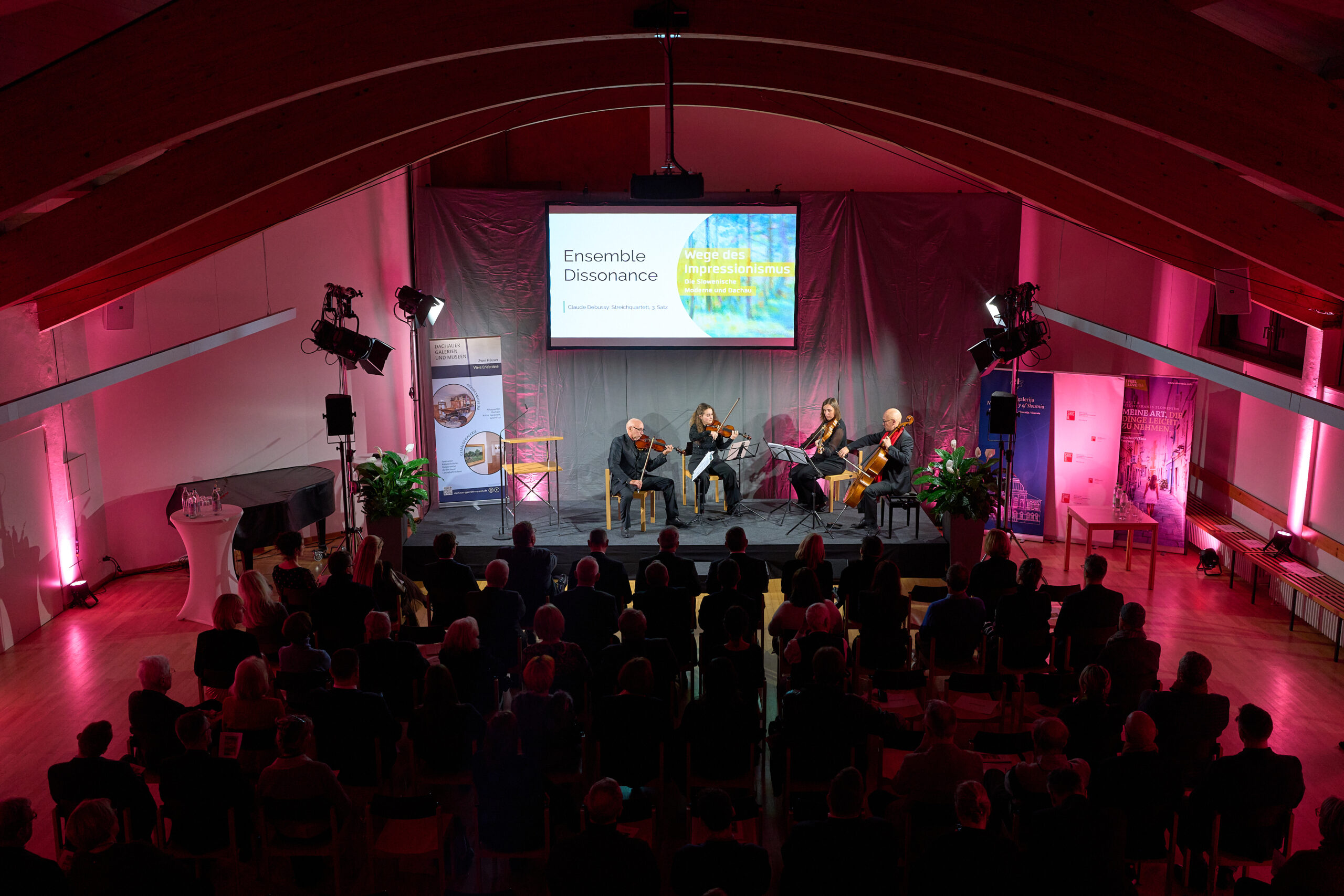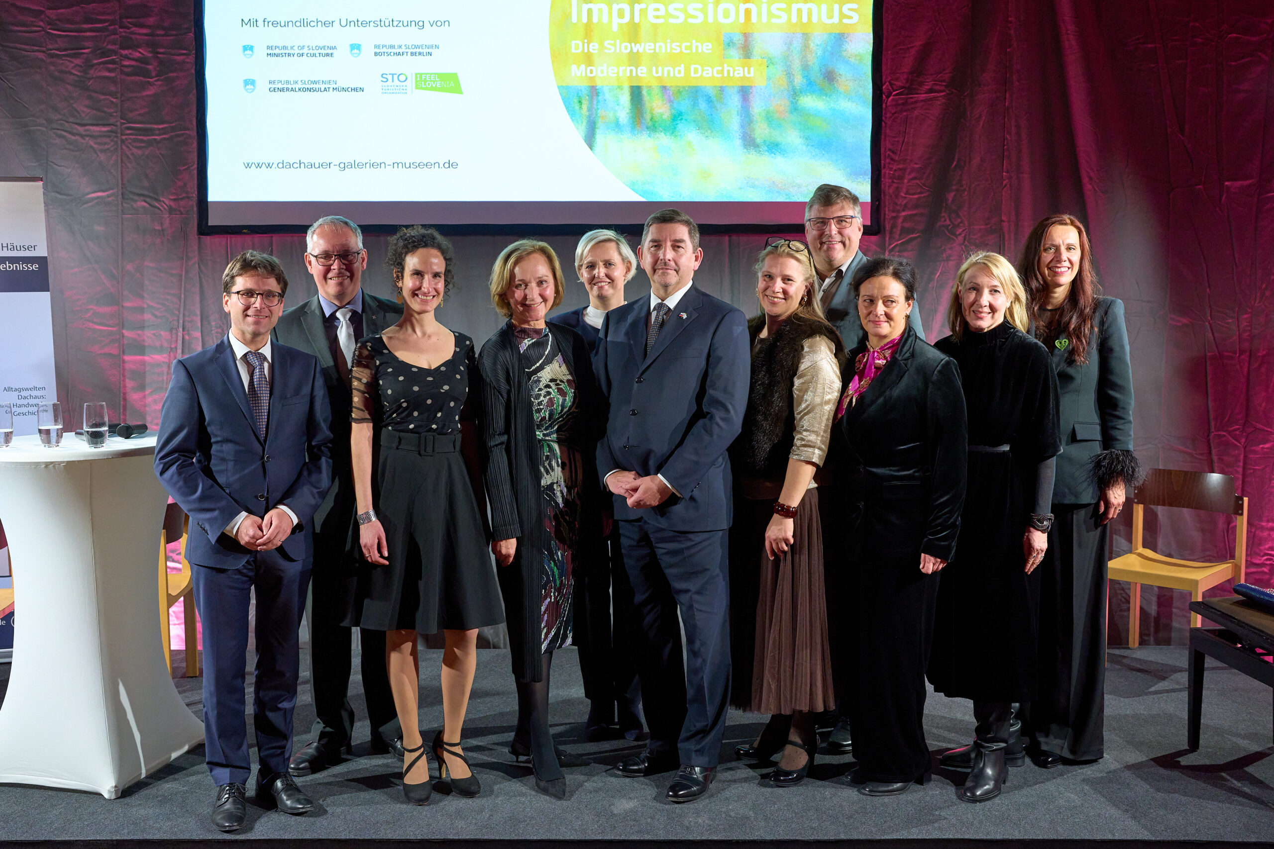 Im Rahmen der Ausstellung „Wege des Impressionismus“ werden bedeutende Werke der Slowenischen Moderne erstmals in Deutschland präsentiert. Die Ausstellung umfasst Gemälde, die den gesellschaftlichen Wandel jener Zeit widerspiegeln und die künstlerische Entwicklung in Slowenien und Dachau dokumentieren. Besucher:innen erhalten einen tiefen Einblick in die malerischen Traditionen sowie die Einflüsse der Münchner Schule auf die slowenische Moderne.